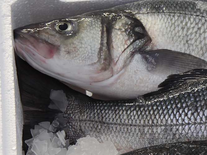 Sea bass are available in 5, 6, and 10 kg polyester boxes, fully labeled in compliance with European legislation and ensuring complete traceability. The fish are offered in the following size categories: